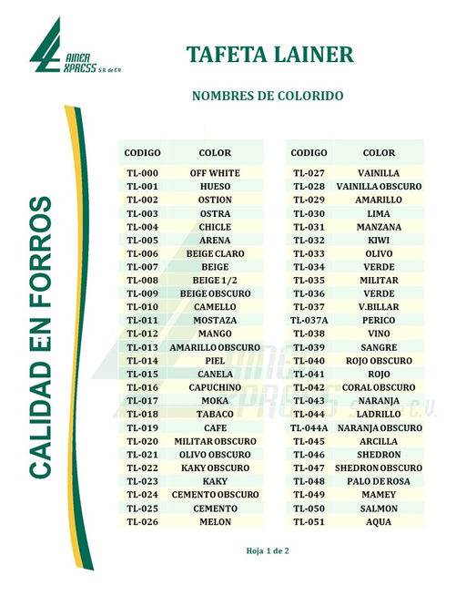 TEJIDO: PLANO, LIGAMENTO: TAFETAN